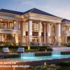 Biệt thự nổi bật với vẻ đẹp ngoại thất tinh tế và ấn tượng. Phía trước ngôi nhà, các cửa được làm với kích thước lớn, lớp hệ cửa nhôm kính tạo sự lung linh và thể hiện sự sang trọng. Mặt trực diện của biệt thự được trang trí bởi các trụ cột vuông to, tạo nên sự bề thế và mạnh mẽ cho ngôi nhà.