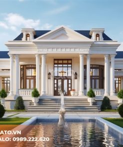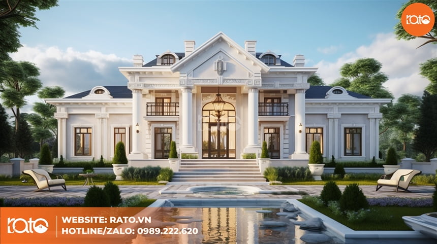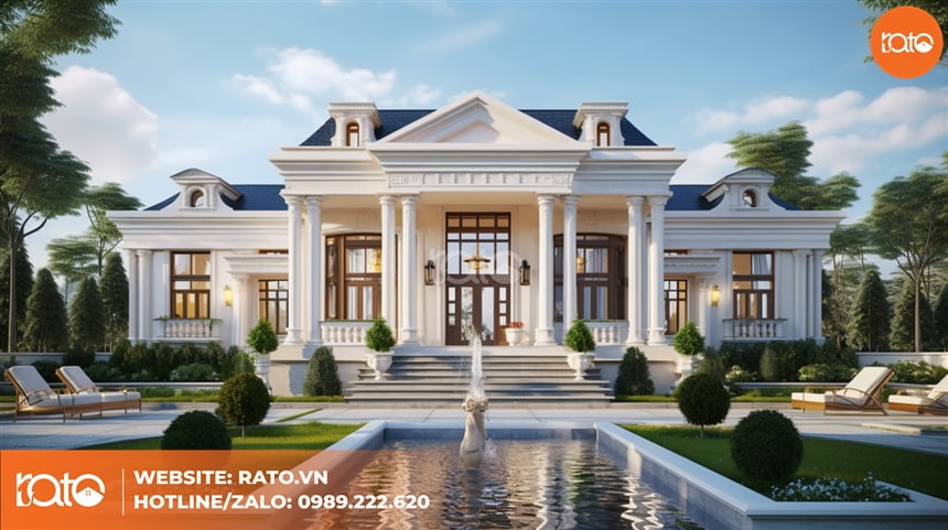 Hơi hướng phong cách Châu Âu là điểm đặc biệt đáng chú ý của ngôi nhà này. Sự phối hợp giữa các yếu tố kiến trúc tân cổ điển và phong cách Châu Âu mang đến một không gian độc đáo, thu hút và đầy sự sang trọng. Những chi tiết nhỏ như hoa văn trên mái càng làm cho ngôi nhà trở nên hài hòa và đẳng cấp.