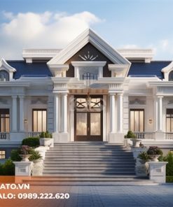 Mẫu nhà này mang hơi hướng châu Âu, với việc sử dụng màu trắng chủ đạo và các chi tiết trang trí tinh tế. Điều này làm cho cả ngôi nhà trở nên sang trọng và quý phái.