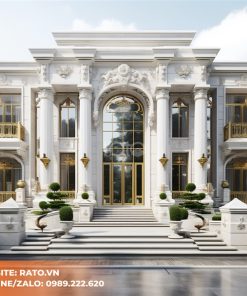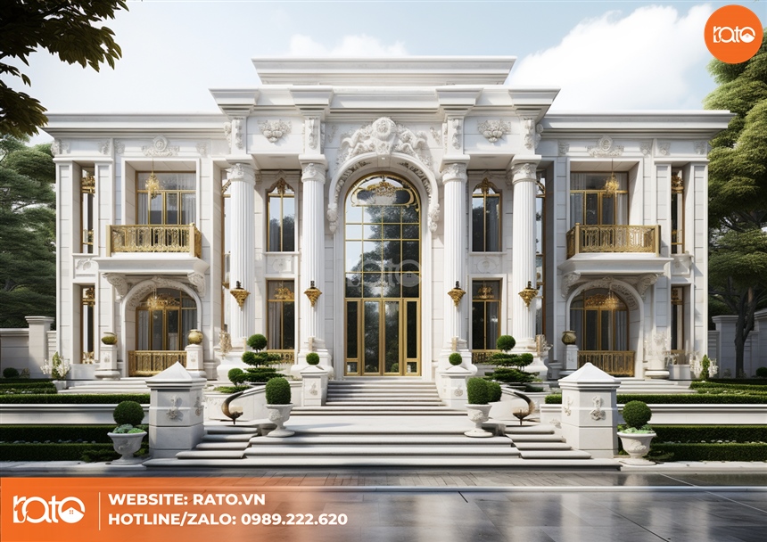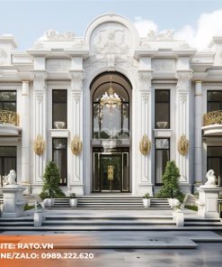 Ngôi biệt thự này thể hiện sự sang trọng với kiến trúc tân cổ điển. Sự kết hợp hài hòa giữa gạch lát trắng tinh khôi và các chi tiết kiến trúc tân cổ điển tạo nên vẻ đẹp lịch lãm và quý phái. Thiết kế tối giản với màu sắc tinh tế tạo nên một không gian sống đẳng cấp và độc đáo.