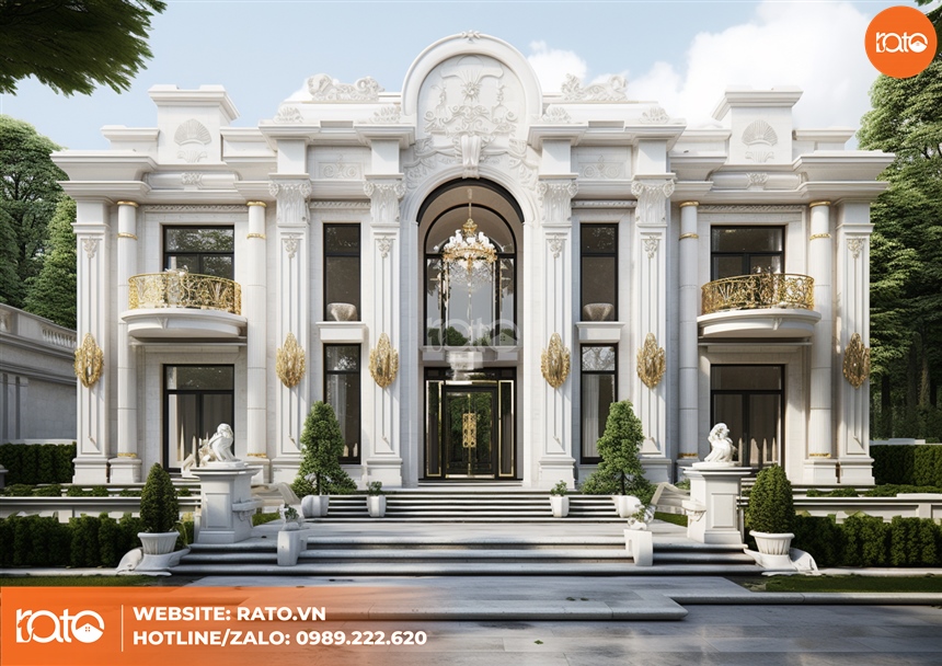 Biệt thự phong cách tân cổ điển đều sở hữu những chi tiết phào chỉ hoa văn trang trí mang tính hình thược như thiên nhiên, động vặt được đắp một cách công phu. Bên cạnh đó những phù điêu, tượng được chạm khắc tinh tế mang đến vẻ đẹp huyền bí, tính nghệ thuật cao cao cho công trình.